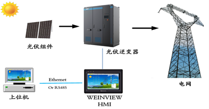 太陽(yáng)能光伏并網(wǎng)逆變器是整個(gè)光伏發(fā)電系統中最為關(guān)鍵的設備之一,它是把太陽(yáng)能電池板產(chǎn)生的直流電能轉換為交流電能的設備,運行過(guò)程中需要多個(gè)參數進(jìn)行監測、計算、顯示、記錄、保存、報警等處理,需要和上位計算機、逆變控制器、無(wú)線(xiàn)GPRS模塊進(jìn)行通訊,實(shí)現數據交換。本文主要講述WEINVIEW觸摸屏在太陽(yáng)能光伏并網(wǎng)逆變器中的應用。