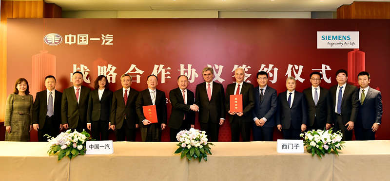 西門(mén)子與中國第一汽車(chē)集團有限公司(以下簡(jiǎn)稱(chēng)“中國一汽”)今天在京簽署戰略合作協(xié)議,雙方將共同攜手合作打造紅旗品牌先進(jìn)的數字化工廠(chǎng),打通其汽車(chē)業(yè)務(wù)價(jià)值鏈,樹(shù)立中德合作數字化工廠(chǎng)的典范。西門(mén)子股份公司總裁兼首席執行官凱颯(Joe Kaeser)和中國一汽董事、總經(jīng)理、黨委副書(shū)記奚國華共同見(jiàn)證了合作協(xié)議的簽署。